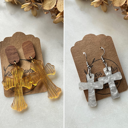 Everyday earrings, faux leather, acrylic, wood, rattan, anything that will go with pretty much everything you own!