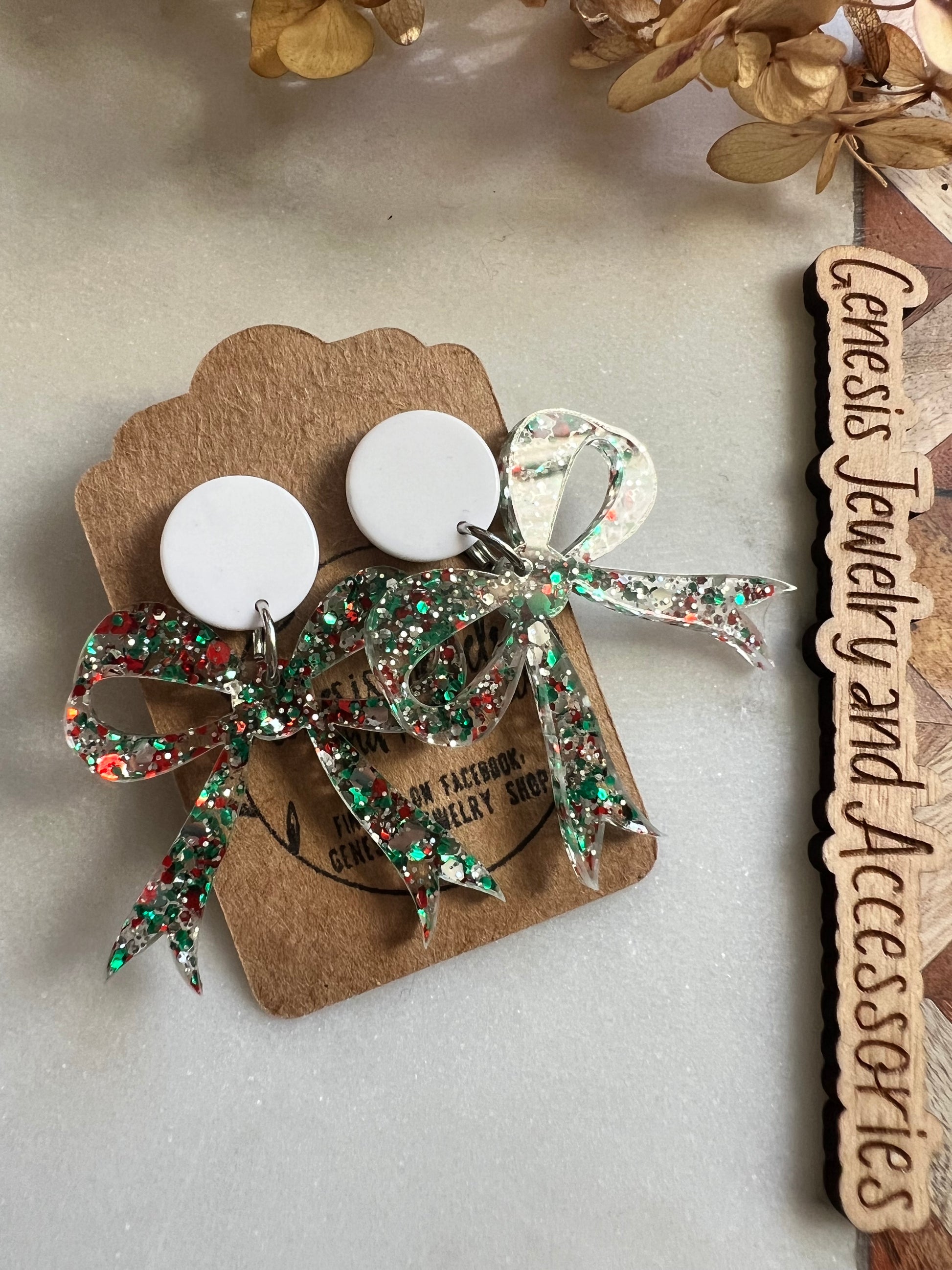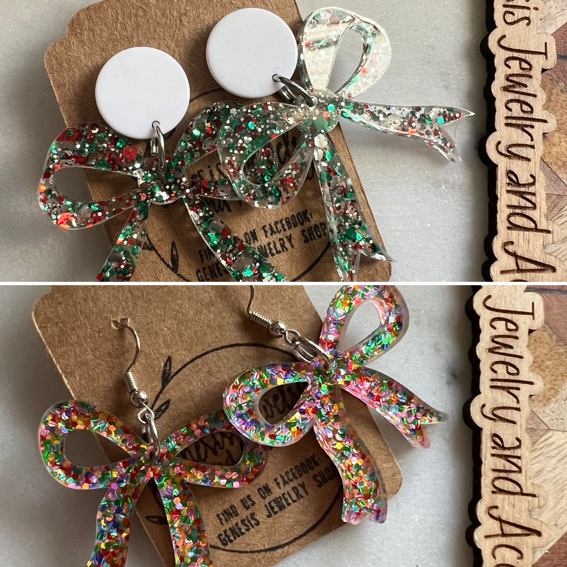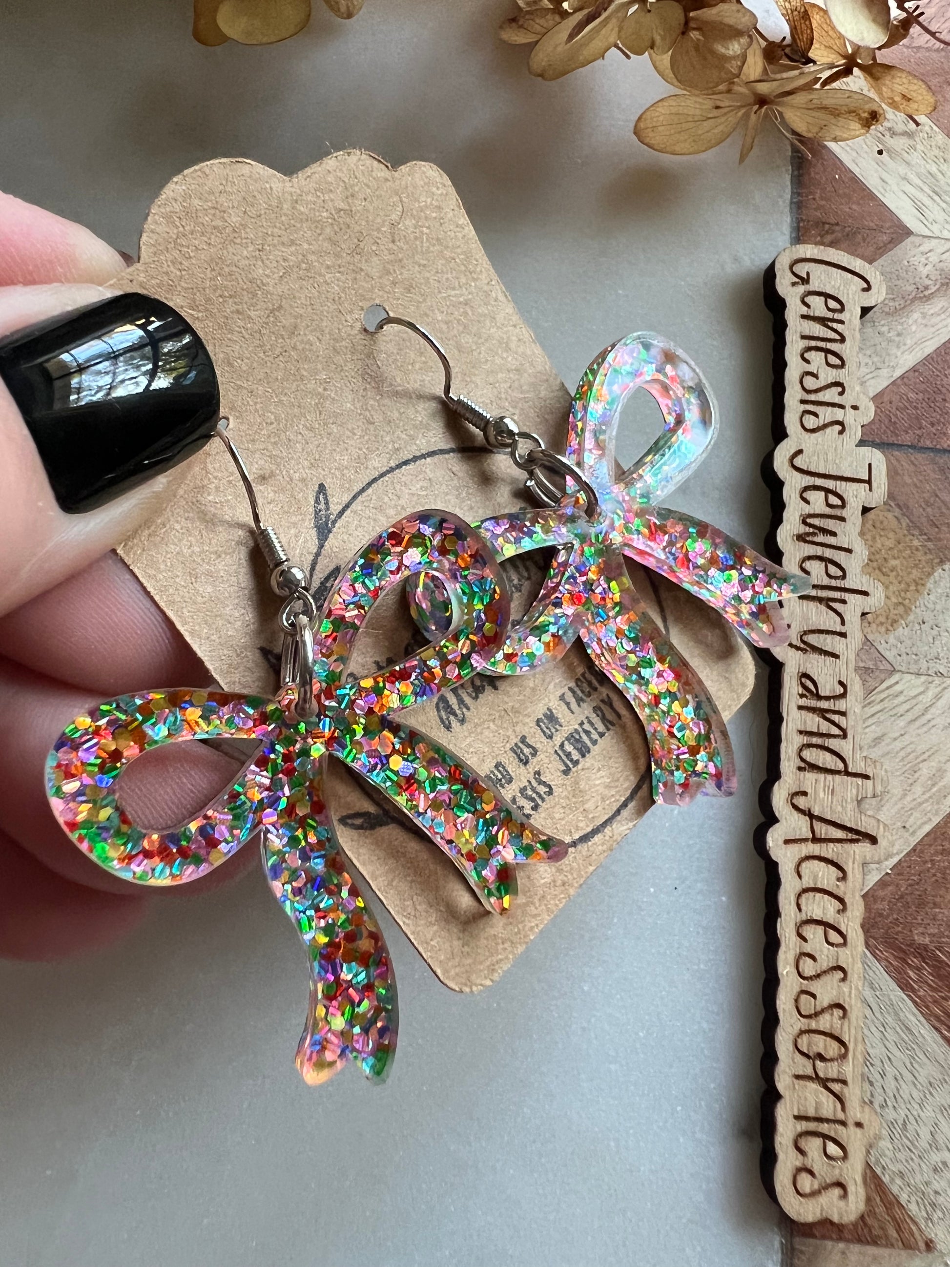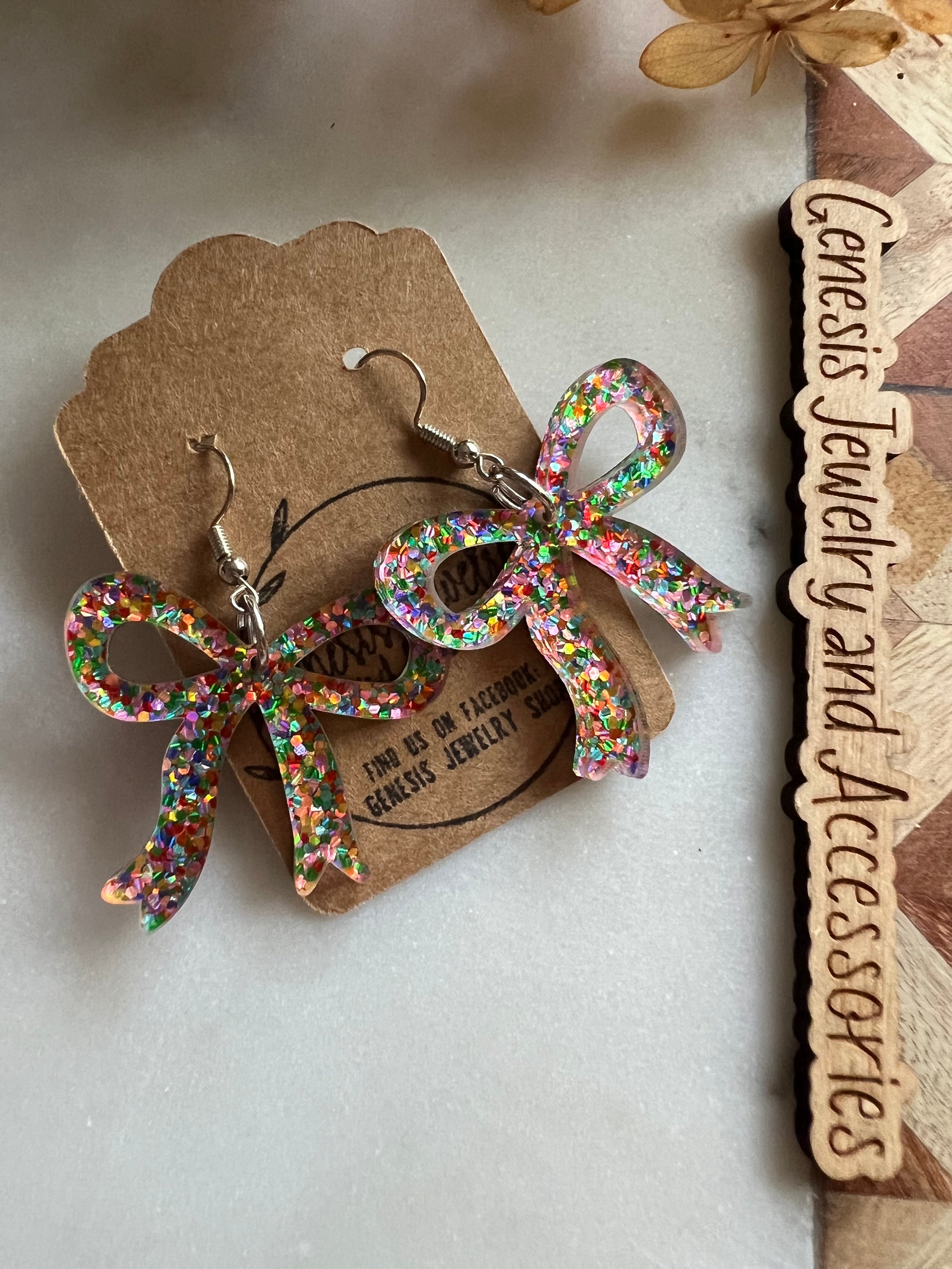 Custom acrylic dangle earrings.