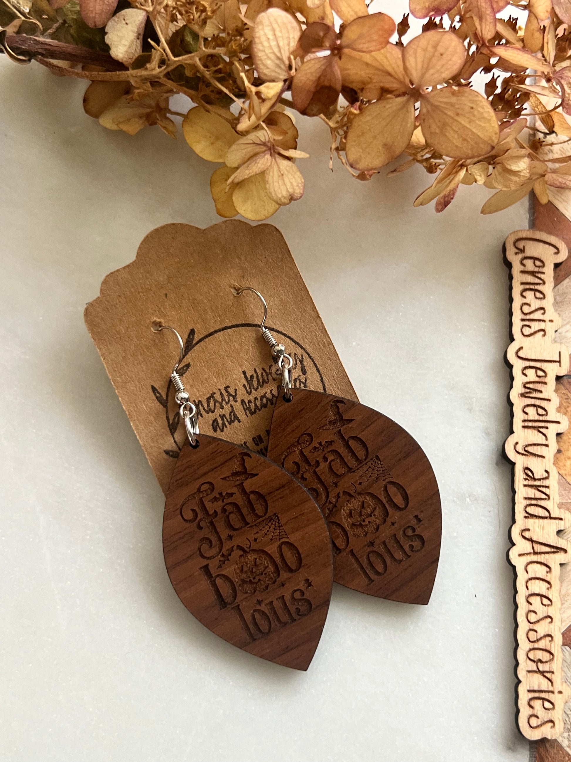 Custom wooden dangle earrings.