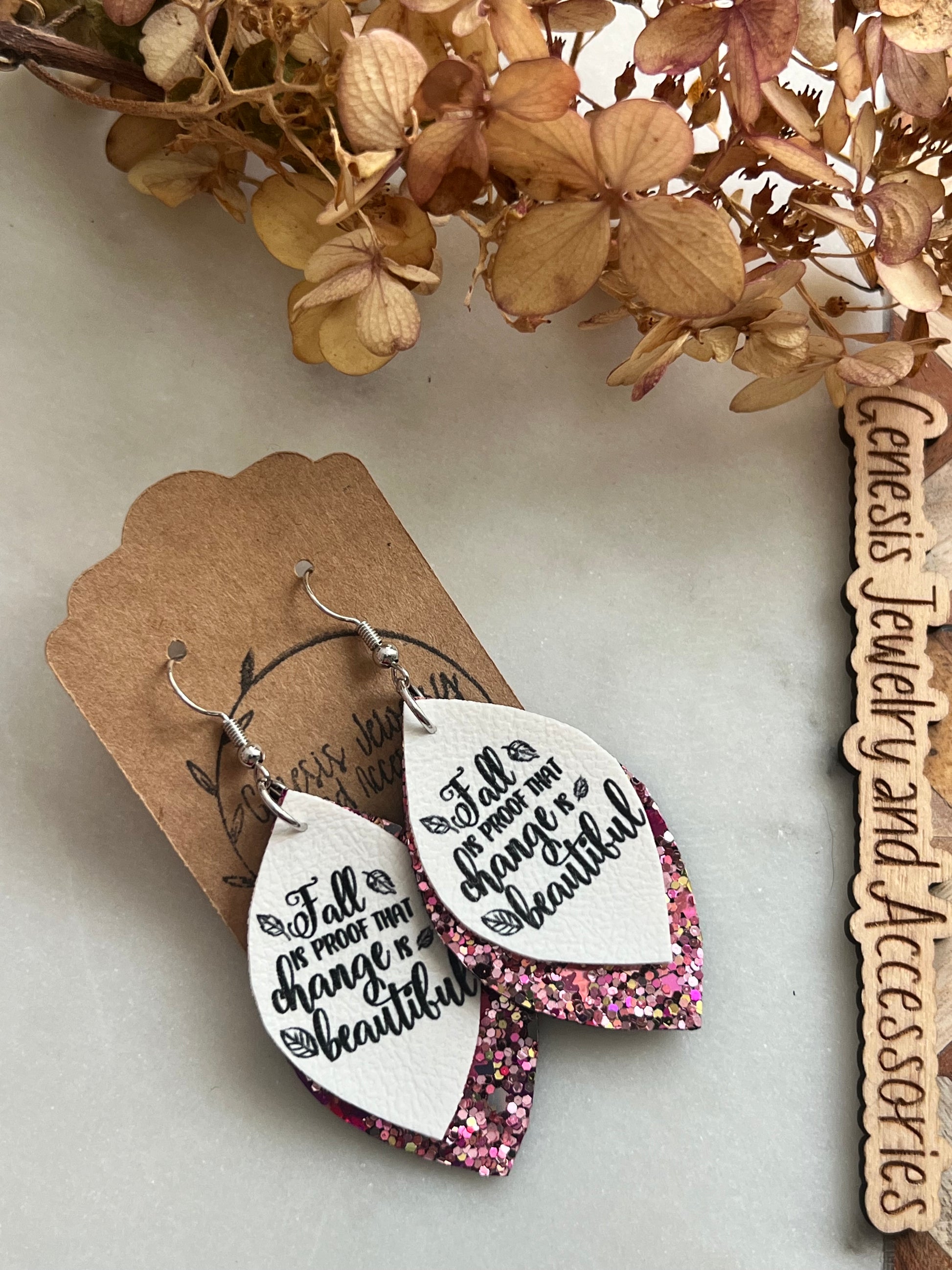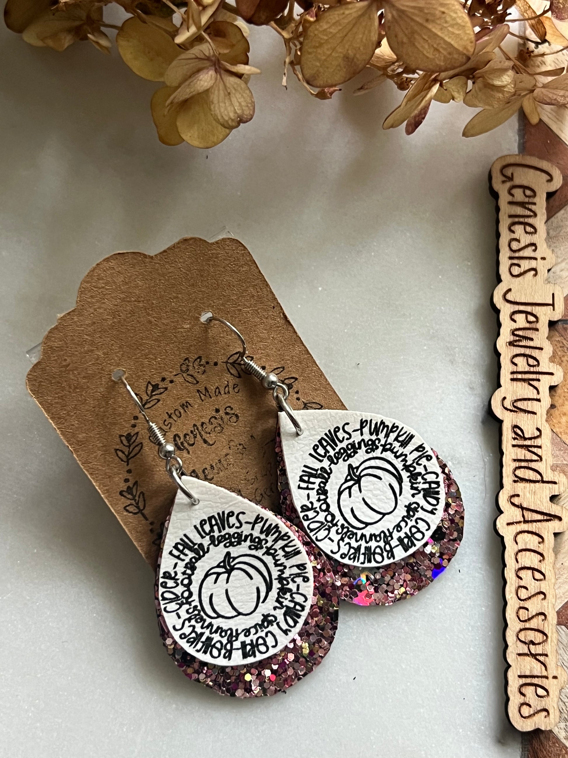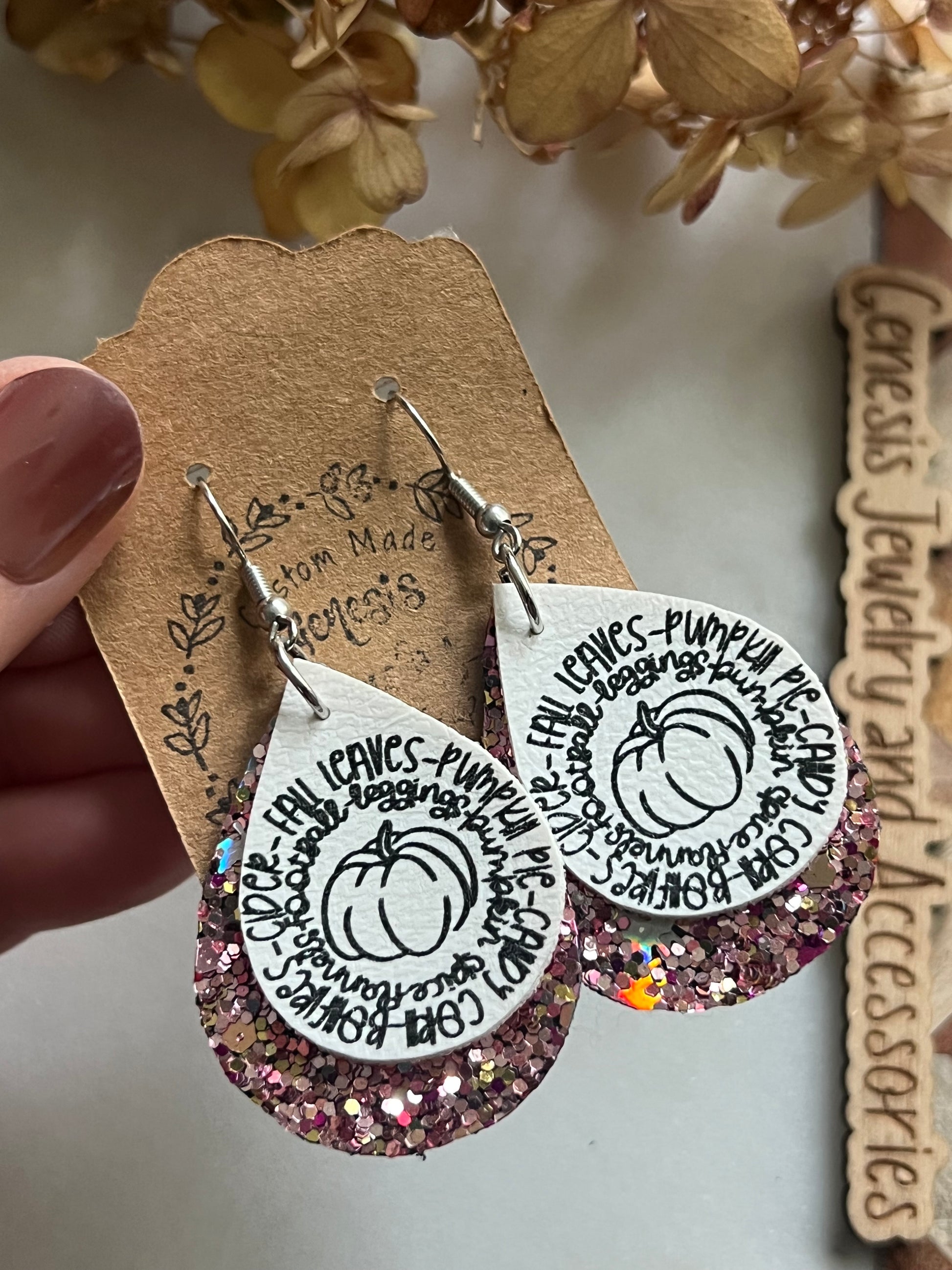 Custom cut faux leather dangle earrings. If you would like a different color than pictured, please add color to notes in cart.