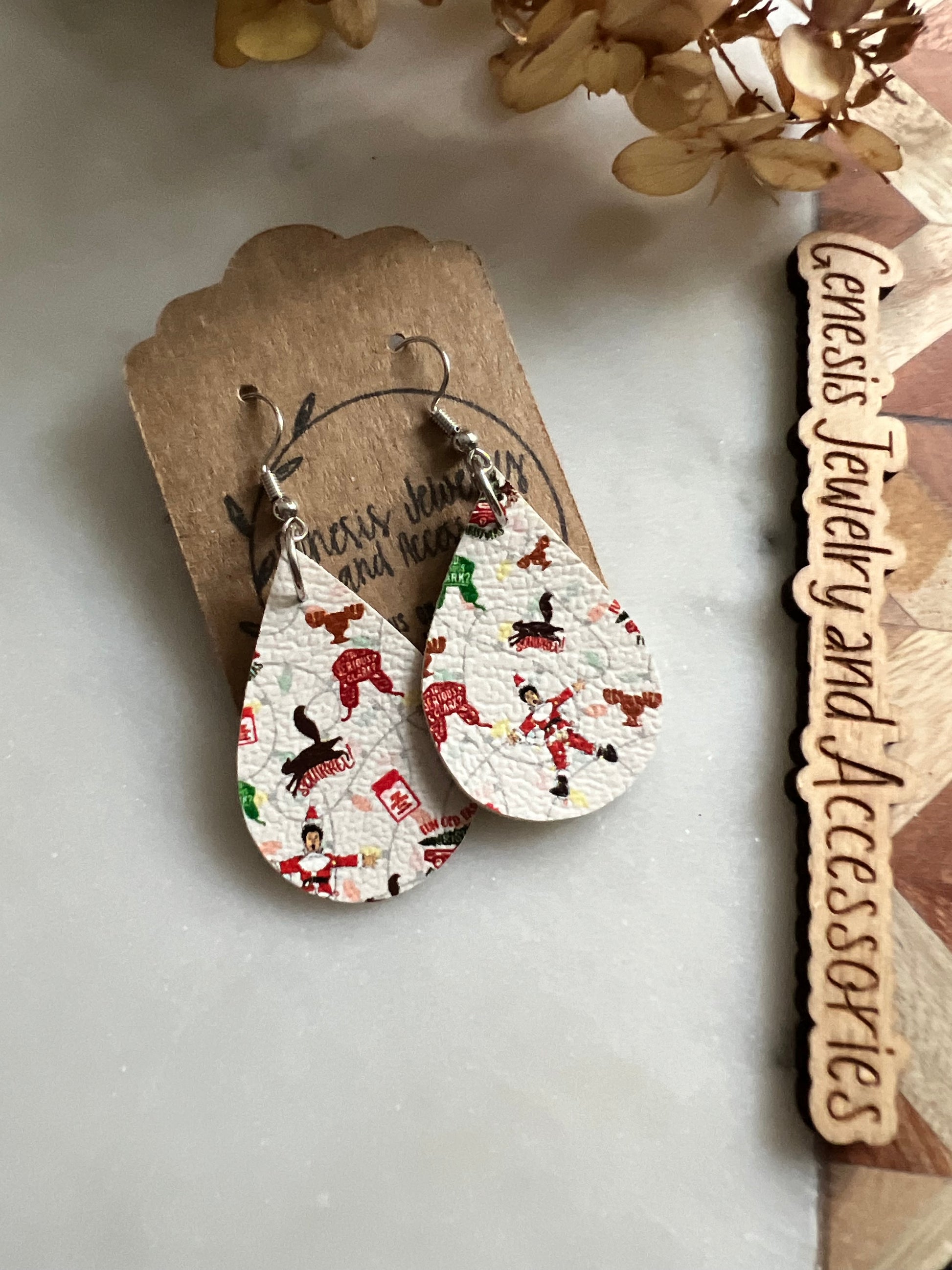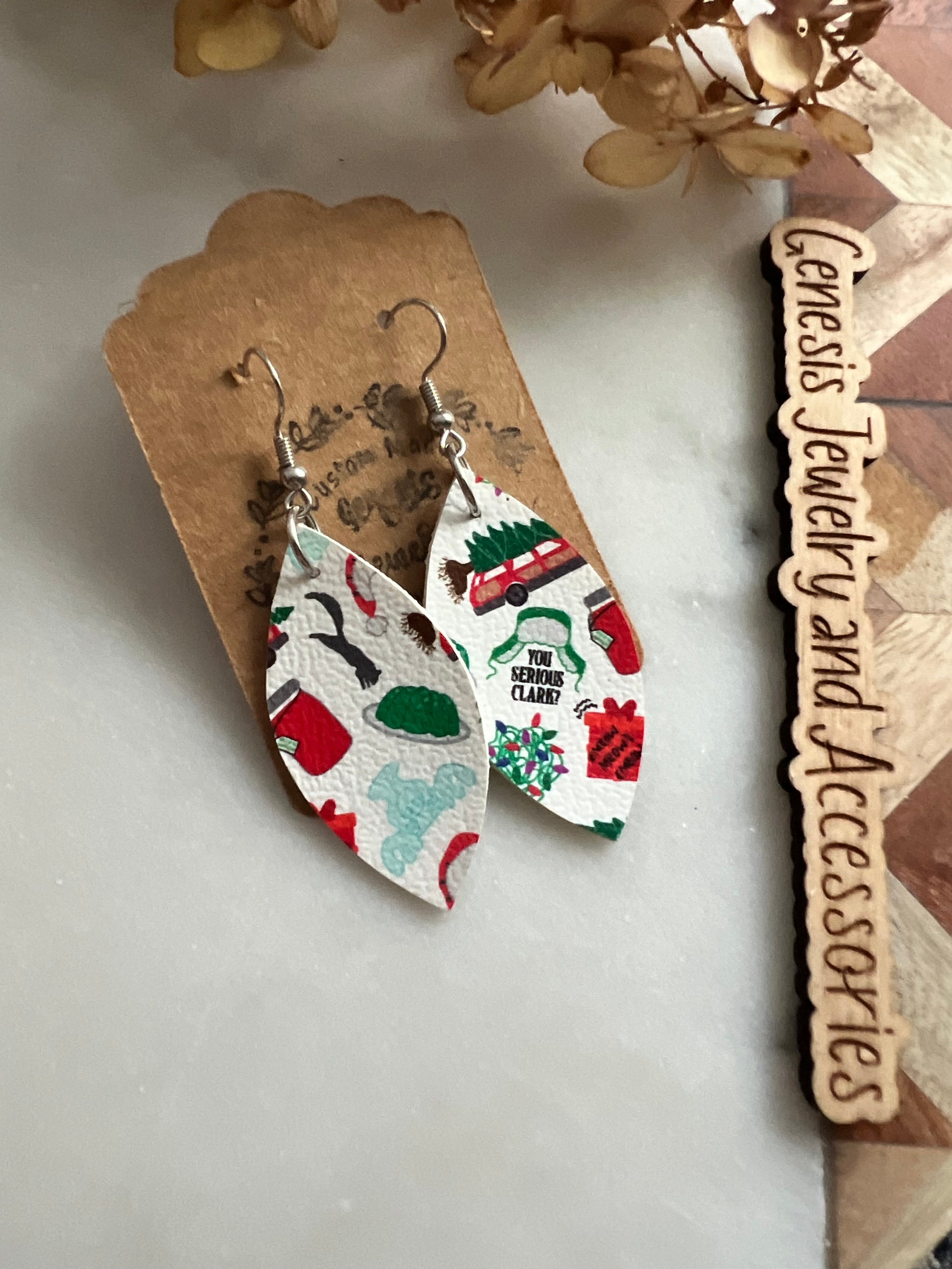 Custom cut faux leather dangle earrings.