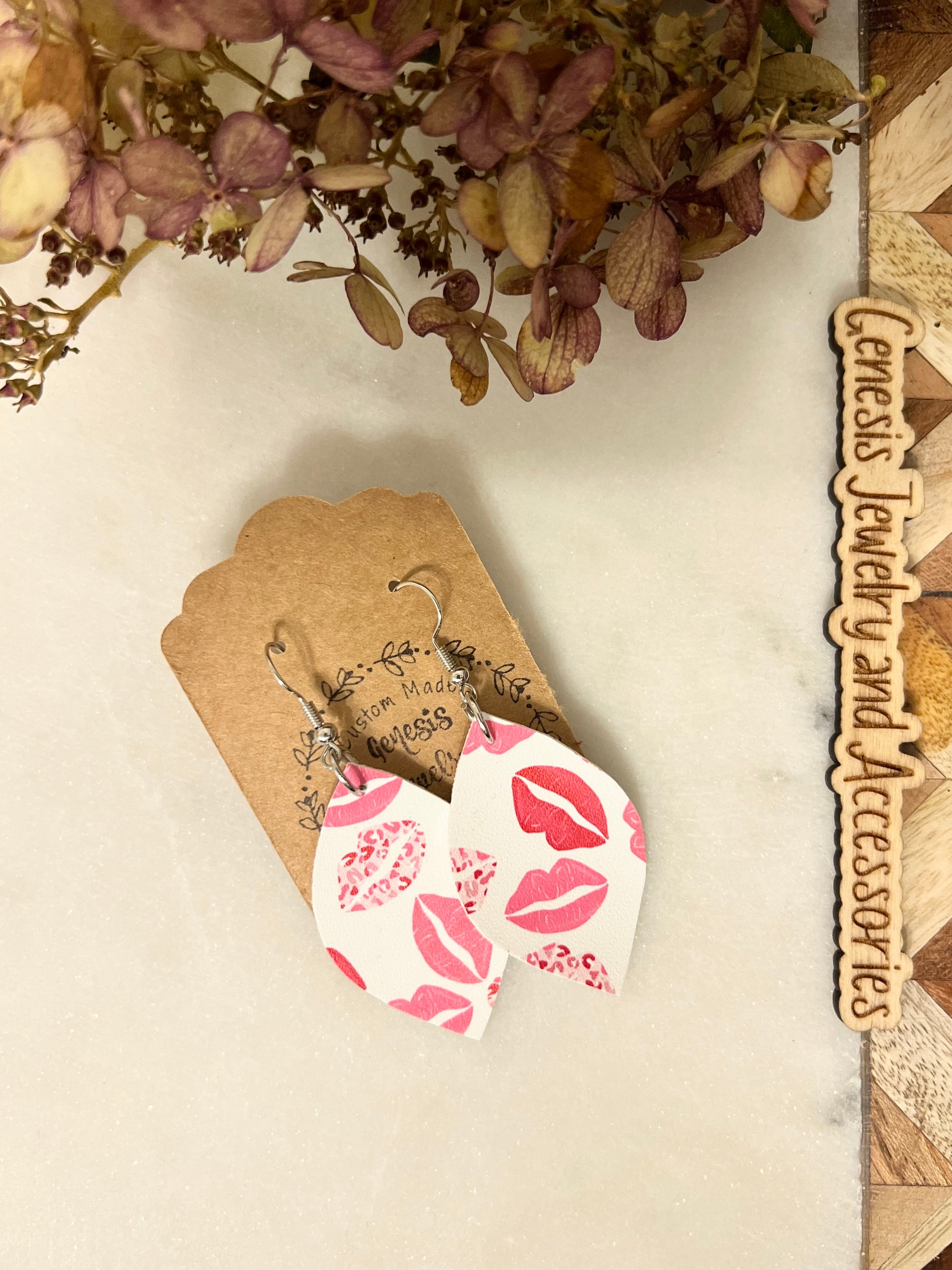 Custom faux leather dangle earrings.