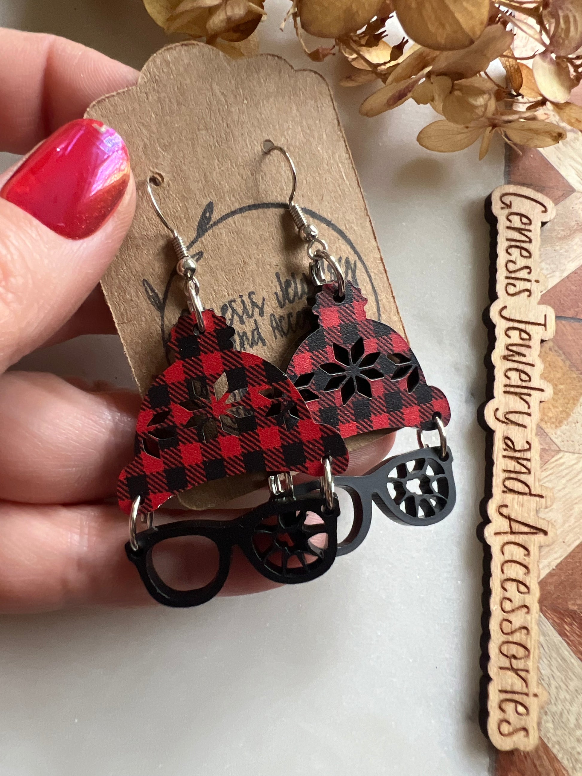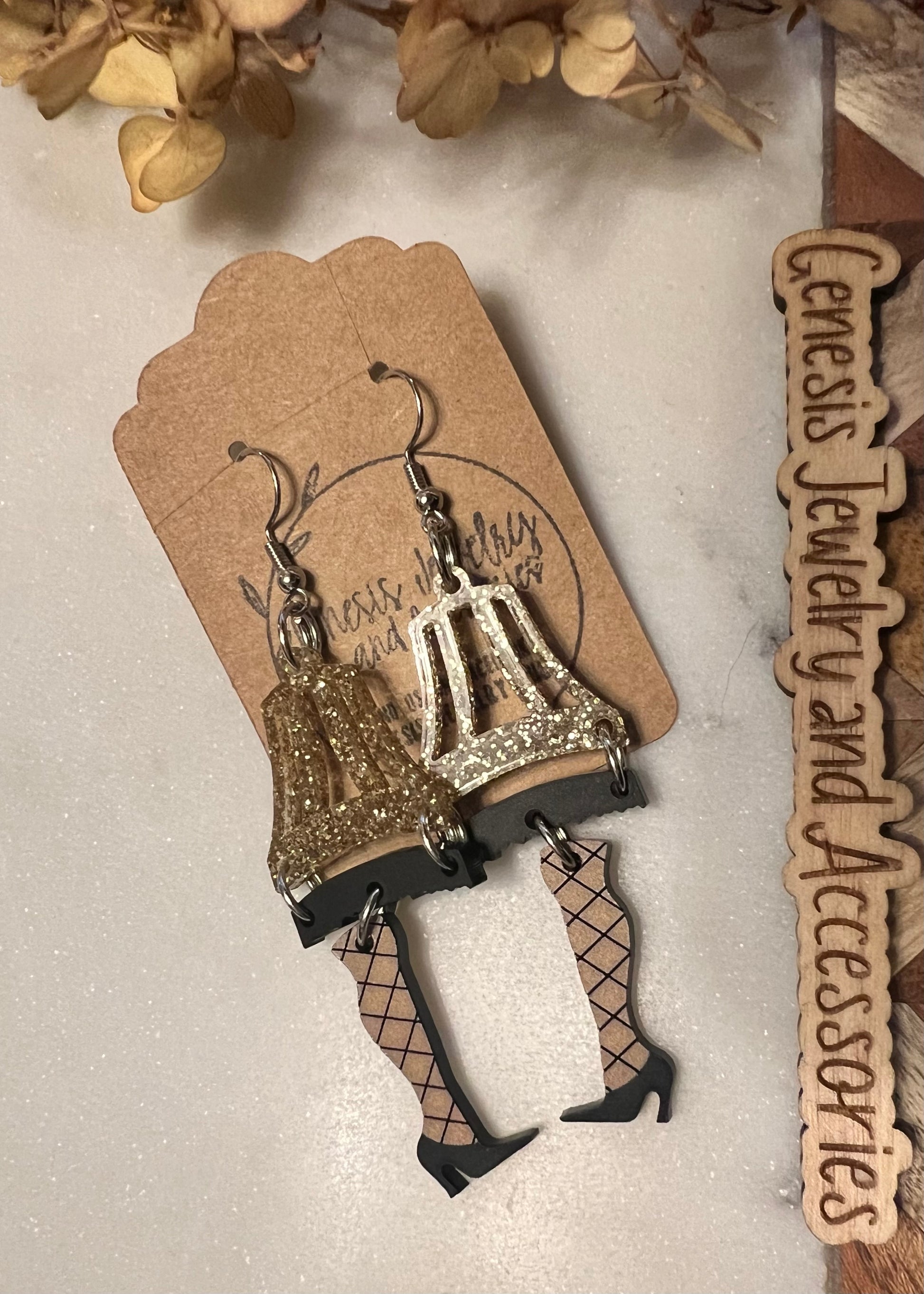 Custom acrylic dangle earrings.