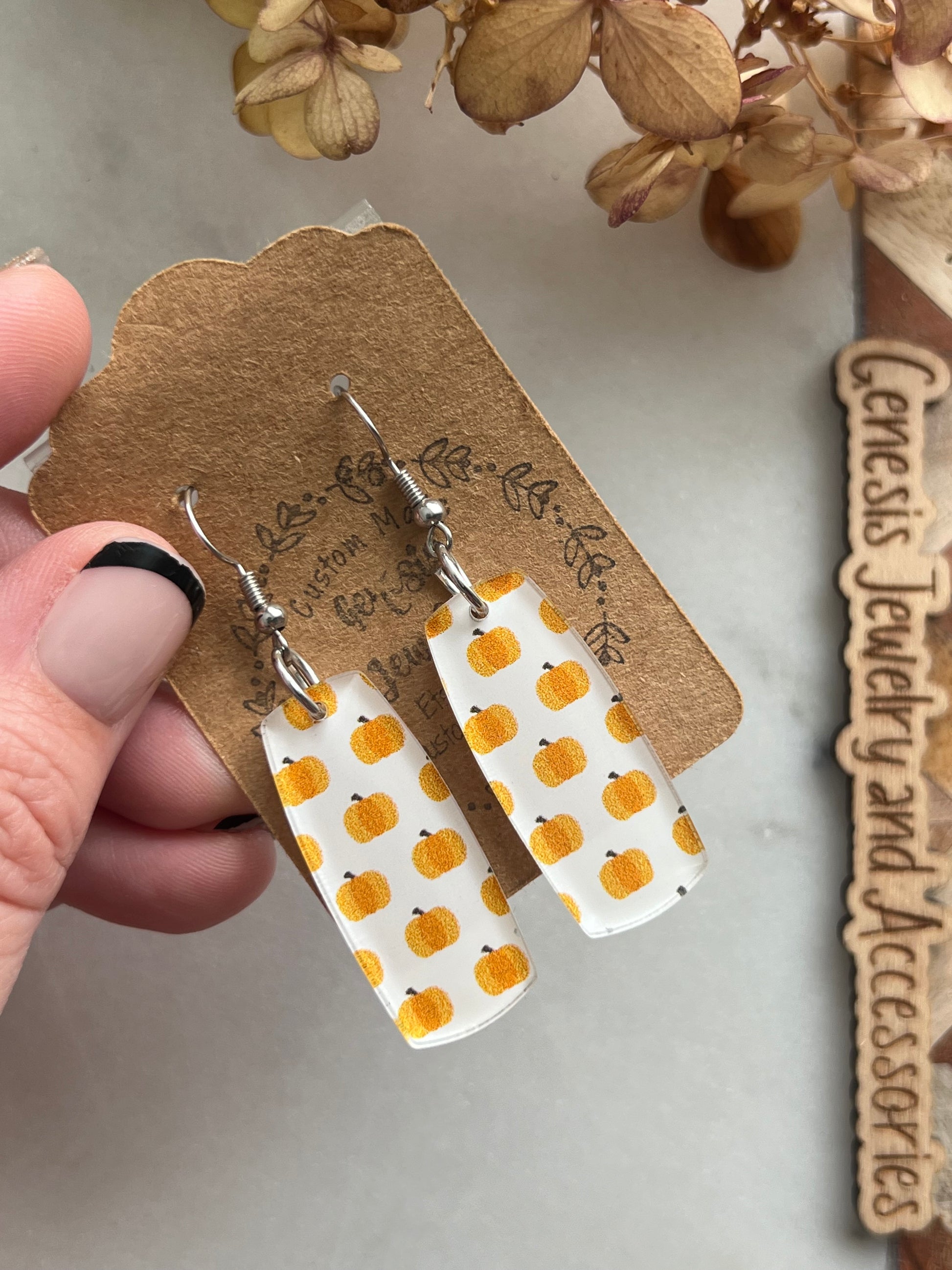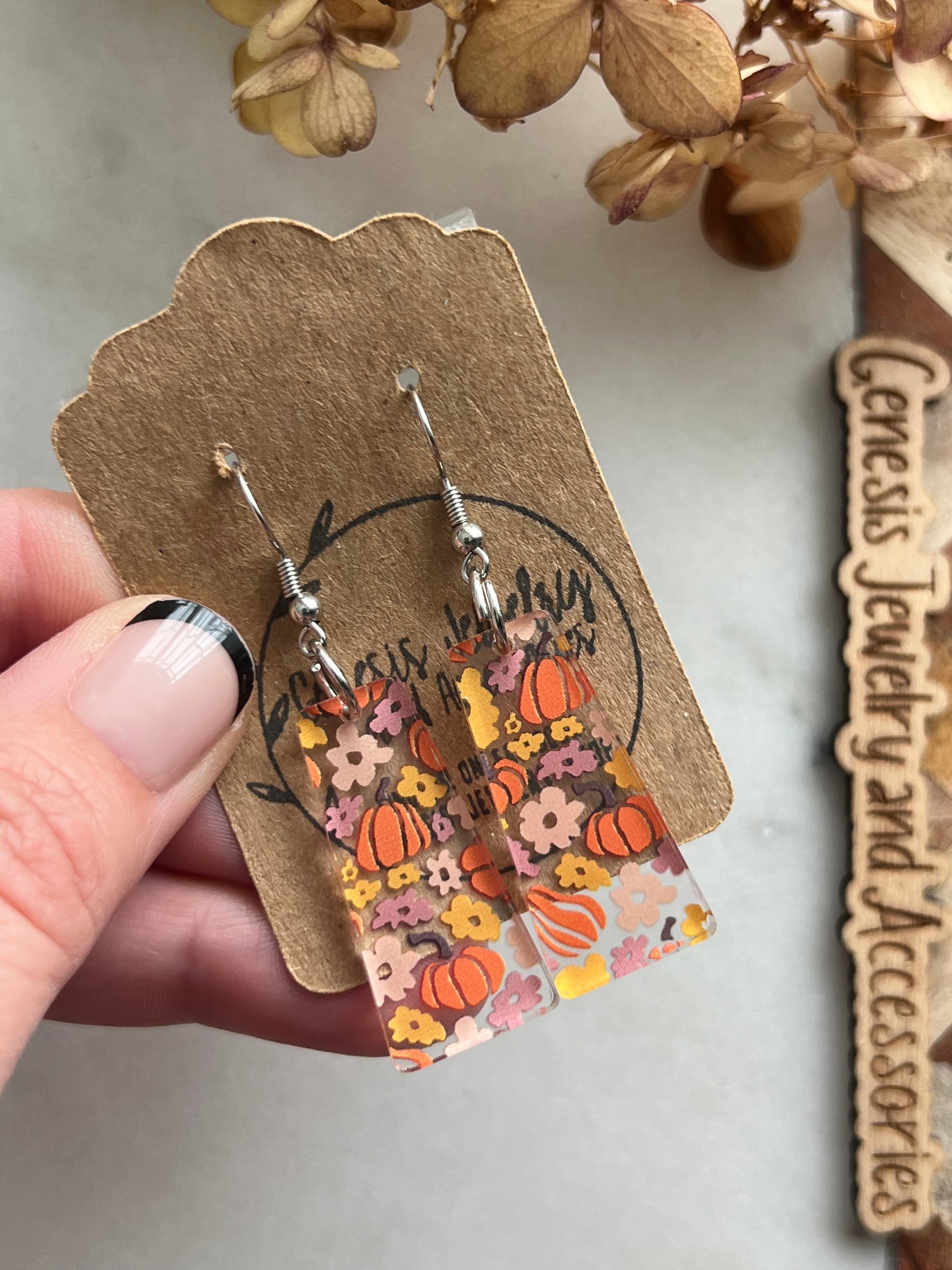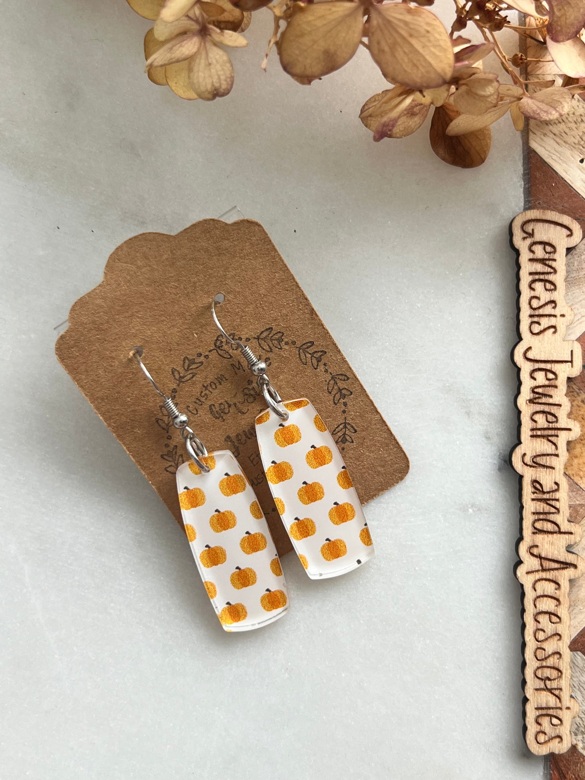 Custom acrylic dangle earrings.