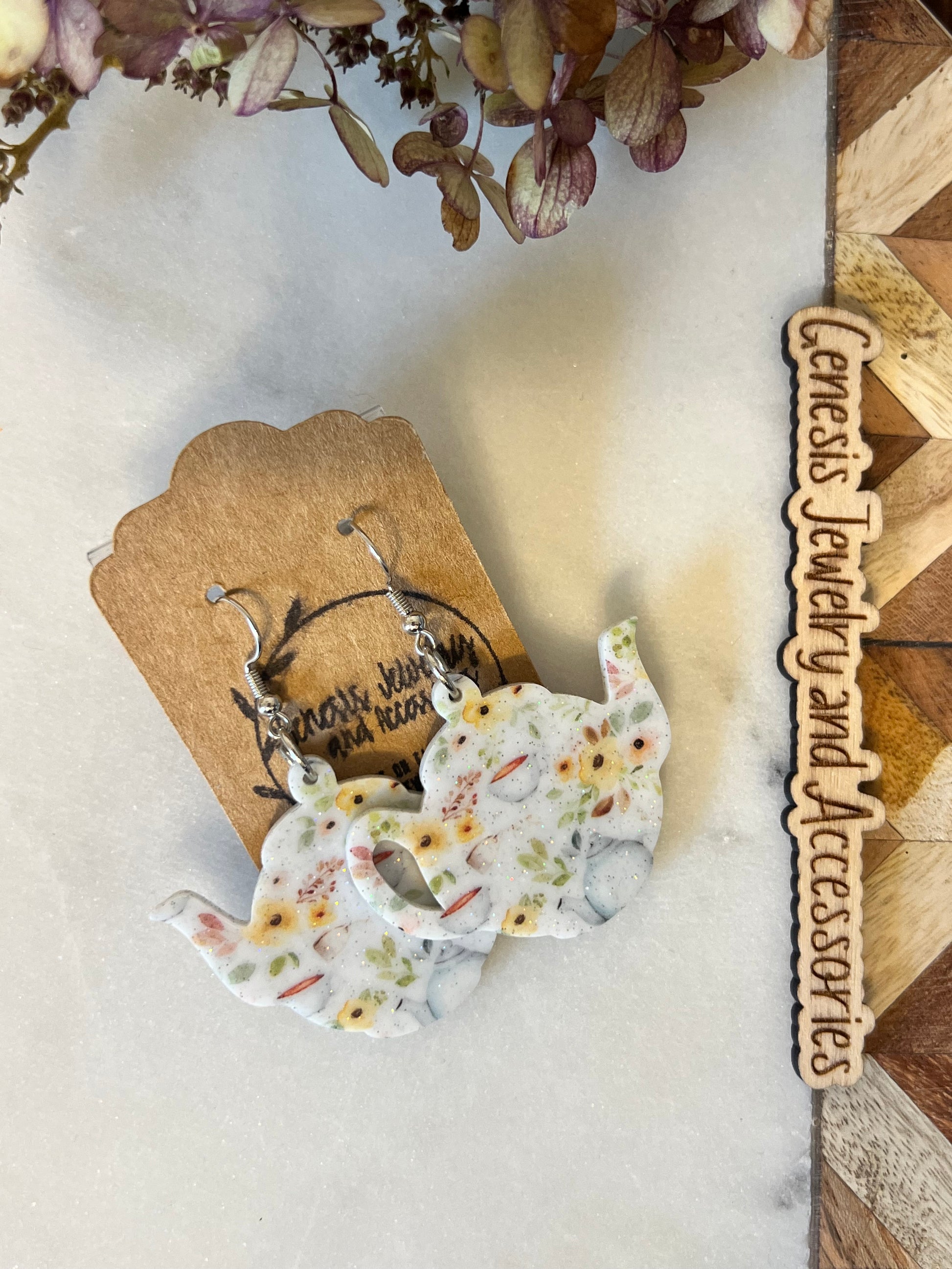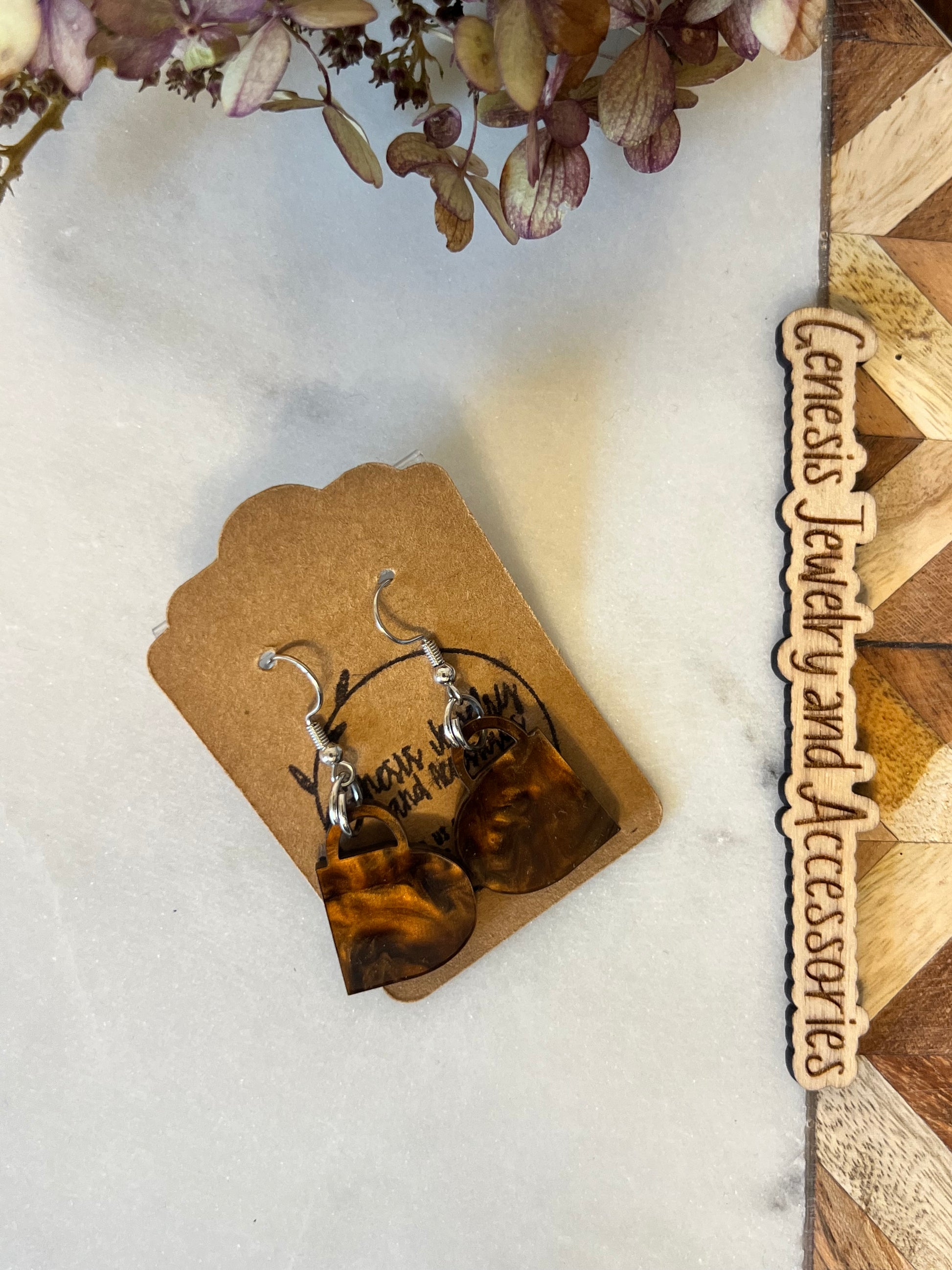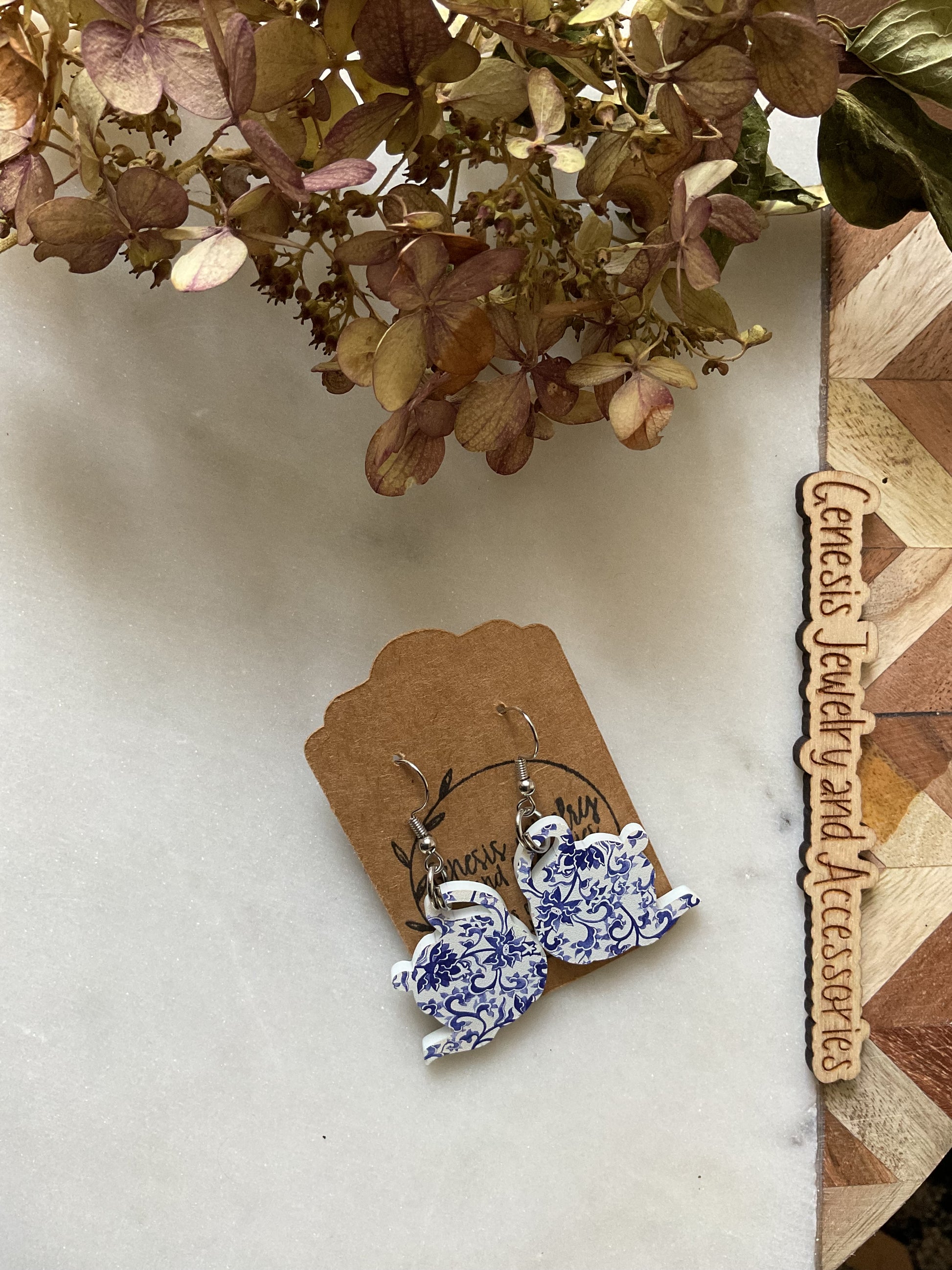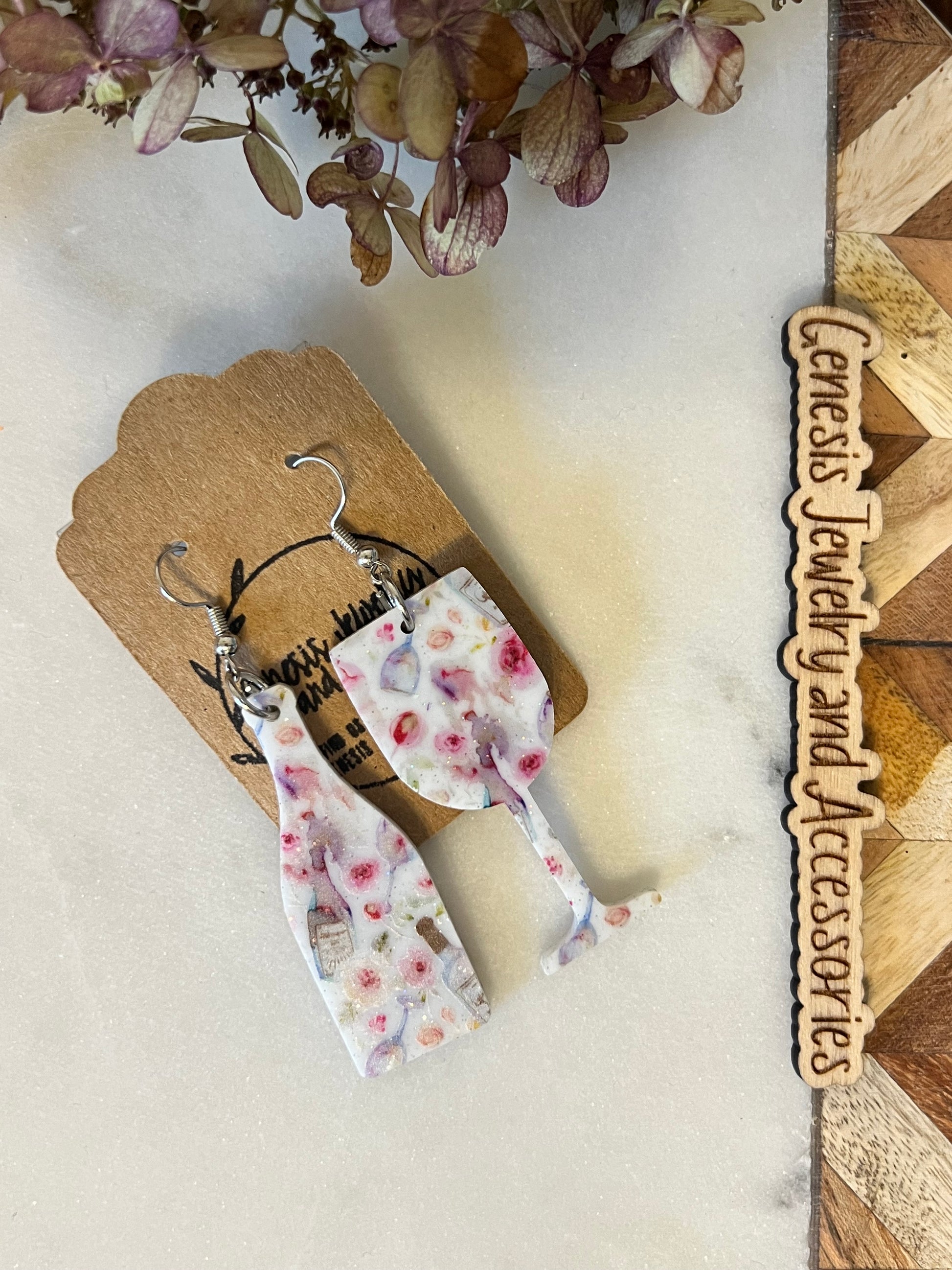Custom acrylic beverage dangle earrings including coffee, tea and wine.